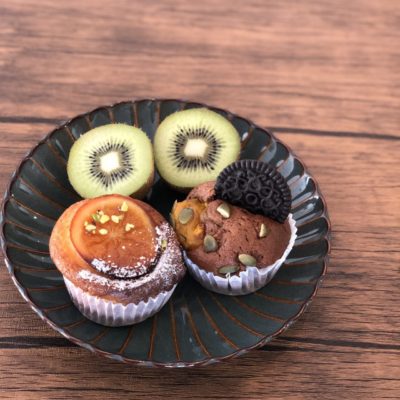 お昼に頂き物のマフィンとキウイ