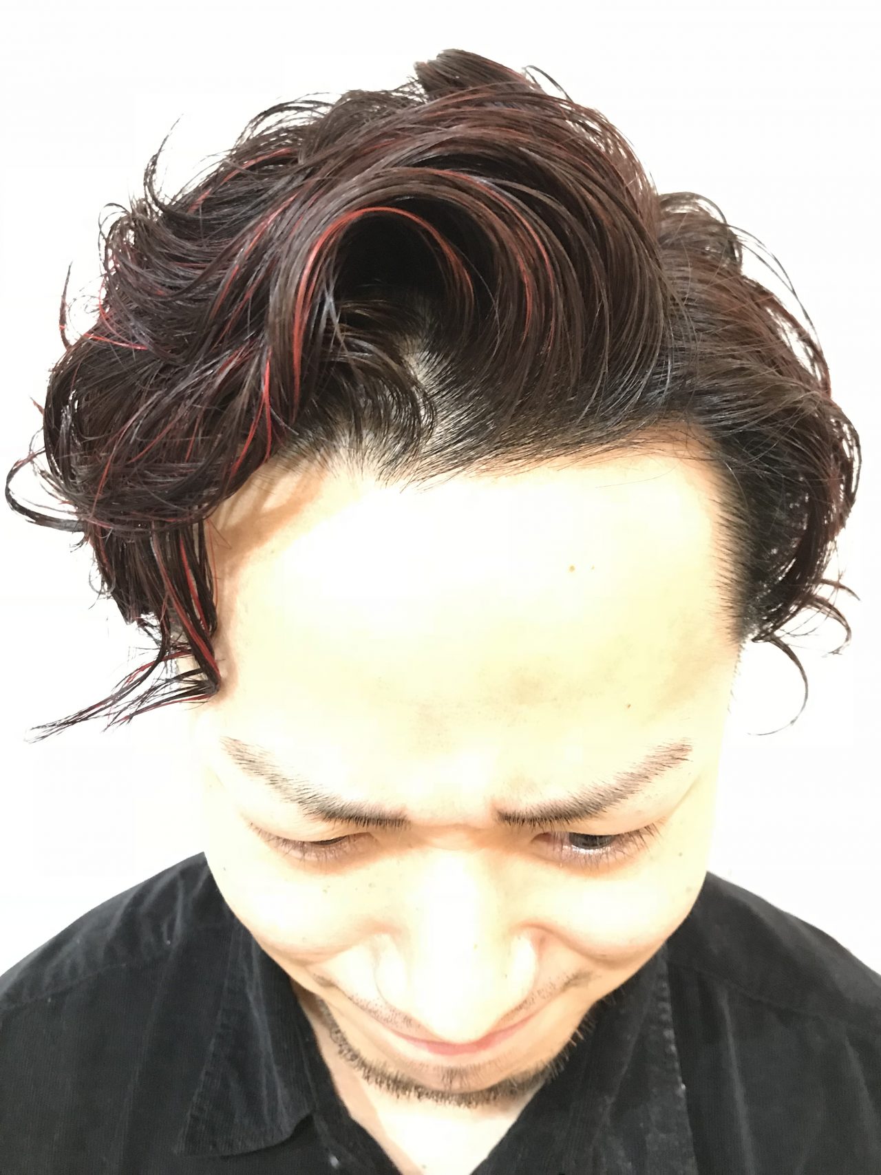 オオツキ店長とイシイさんにハイライトを入れてもらい被せる形で好きな赤をいれてもらいました。